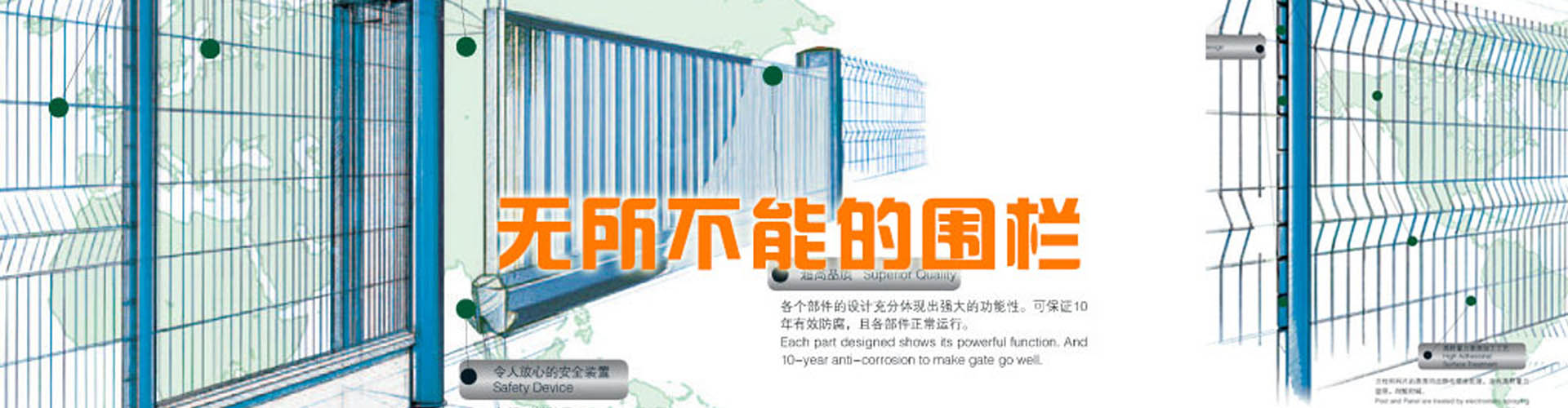河北思固爾圍欄設(shè)施有限公司致力于專業(yè)的場地防護(hù)產(chǎn)品的研發(fā)與生產(chǎn),為全球客戶提供優(yōu)質(zhì)先進(jìn)的金屬圍欄、全鋼結(jié)構(gòu)大門和其他防護(hù)產(chǎn)品及服務(wù)。思固爾圍欄以一種目前市場上成熟的設(shè)計理念將立柱與焊網(wǎng)結(jié)合在一起,可以應(yīng)廣大客戶的要求提供理想的解決方案。公司于2002年通過ISO9001質(zhì)量管理體系認(rèn)證;2004年被評為項目建設(shè)先進(jìn)單位,信用優(yōu)良企業(yè),科技進(jìn)步先進(jìn)單位;2006年底公司取得了自營出口權(quán);2006年5月10日思固爾圍欄獲得中華人民共和國國家知識產(chǎn)權(quán)局頒發(fā)的實用新型專利證書目前,公司產(chǎn)品銷售網(wǎng)絡(luò)已遍及新疆、黑龍江、遼寧、江蘇、內(nèi)蒙古、海南、廣西、廣東、湖南、湖北、上海、福建、浙江、河南、北京等全國各地,并出口至加拿大、烏克蘭、伊朗、新西蘭、泰國、俄羅斯、南非、印度、巴基斯坦、韓國等30多個國家和地區(qū)。今天的思固爾已發(fā)展成集研發(fā)、設(shè)計、制造、貿(mào)易為一體的綜合性實體公司。思固爾人一如既往地秉承之前的創(chuàng)業(yè)精神,引進(jìn)與運用現(xiàn)代的管理模式,迎合未來的市場需求,竭力滿足不同客戶的需求,力爭早日把思固爾打造成中國的民族品牌!-----------------------------------------...